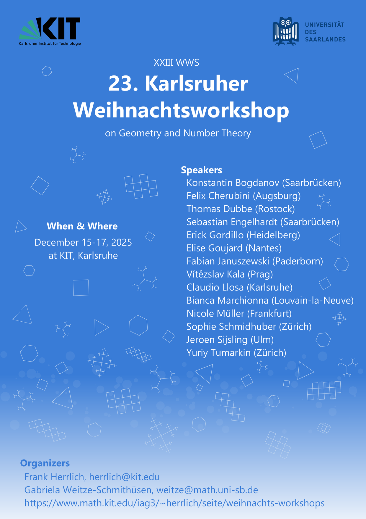 All talks will take place in the seminar room 1.067 in the Math building.